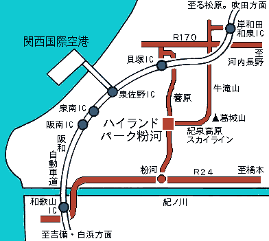 または、岸和田和泉ICから牛滝山方面へ向かい、葛城山からは紀泉高原スカイラインで西へ。