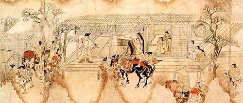 ◆粉河寺縁起絵巻(国宝) 国宝・紙本着色・縦30.8cm、全長19.58m、天正の兵火により巻初部と上下部に、痛ましい損傷がある。内容は観音出現の話と、河内の長者の話とが、5段に分けて描かれている。信貴山縁起絵巻と比べられる逸品で、製作は12世紀頃という。 |